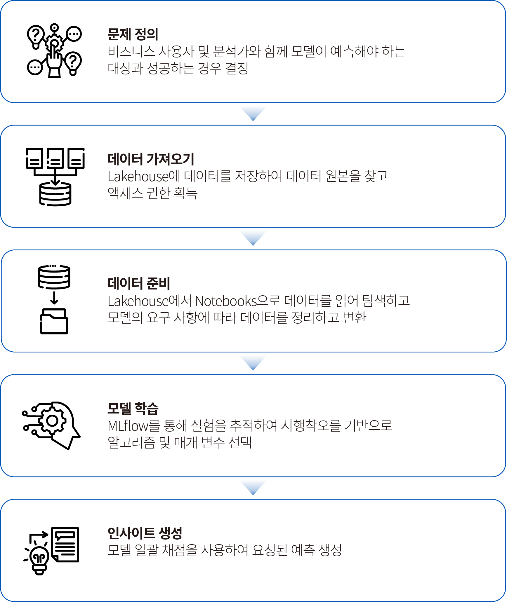 ![]() | Synapse Data Science Fabric에서 머신 러닝 모델을 빌드, 배포 및 운영할 수 있습니다. Azure Machine Learning과 통합되어 기본 제공 실험 추적 및 모델 레지스트리를 제공합니다. 예측을 통해 데이터를 풍부하게 할 수 있으며 분석을 통해 Power BI 보고서를 작성할 수 있습니다. |