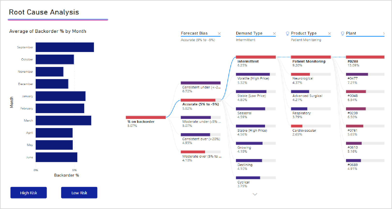분해 트리 분해 트리 시각적 개체를 사용하여 여러 차원에서 데이터를 시각화 할 수 있습니다. 자동으로 데이터를 집계하며 임의 순서로 차원을 드릴다운 할 수 있게 해줍니다. AI(인공 지능) 시각화이기도 하므로 특정 기준에 따라 드릴다운 할 다음 차원을 찾도록 요청할 수 있습니다. 그러므로 임시 탐색 및 근본 원인 분석을 수행하는 데 유용한 도구입니다. |